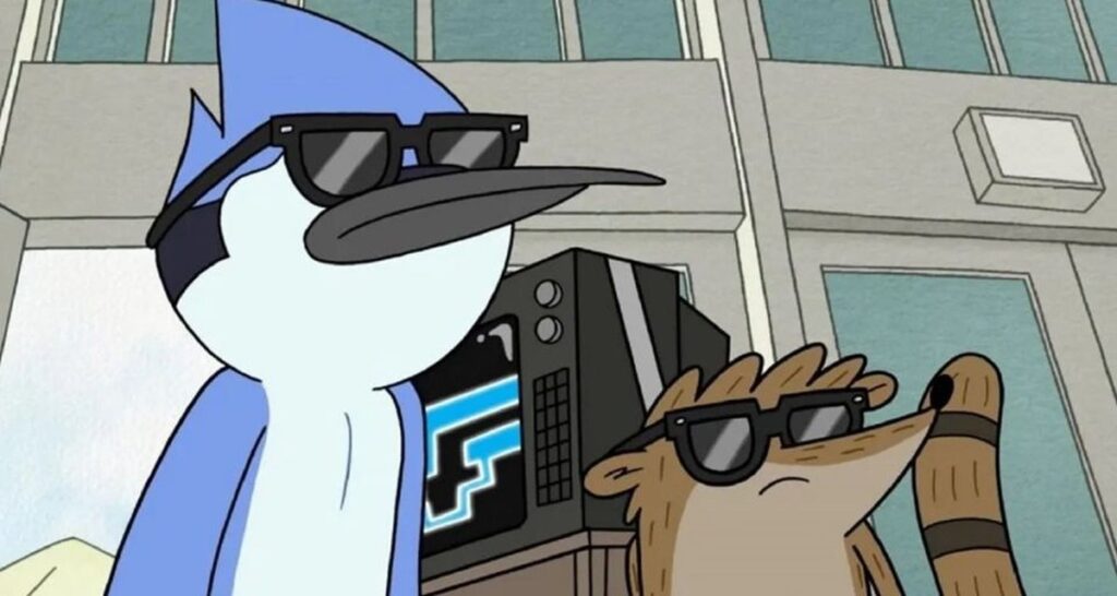 Mordecai e Rigby são dois amigos tentando fugir das responsabilidades da vida adulta. A série trata com humor (e alienígenas) o medo da estagnação e a ansiedade de crescer. Episódios como “Eggscellent” ou “A Regular Epic Final Battle” trazem dilemas reais com um toque surreal.