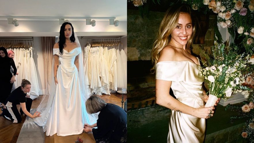 Demi Lovato e Miley Cyrus têm em comum uma longa trajetória desde os tempos da Disney — e agora compartilham também uma coincidência no altar. As duas artistas escolheram vestidos de noiva muito semelhantes da estilista Vivienne Westwood para seus casamentos, mesmo com anos de distância entre as cerimônias.
