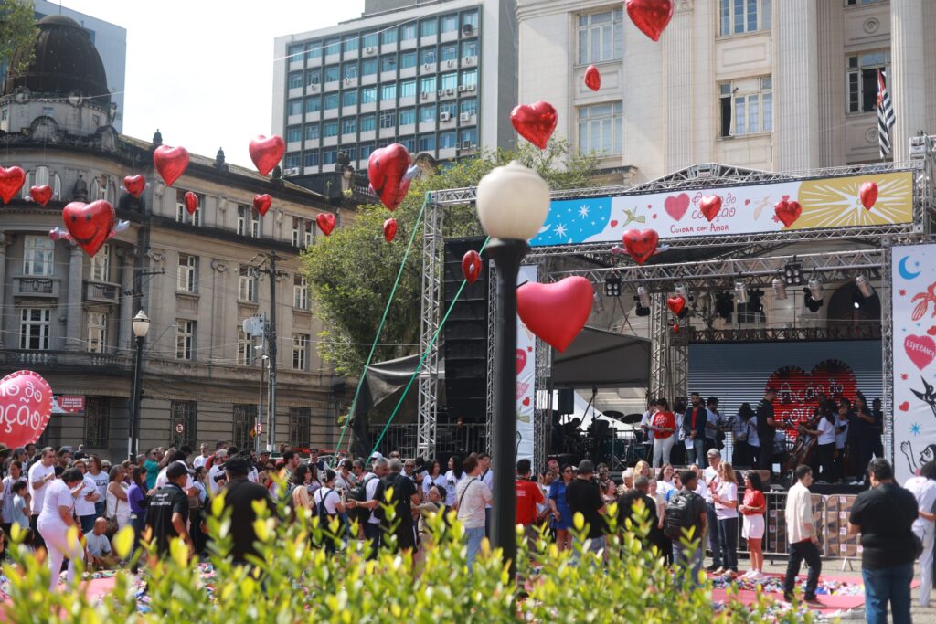 A 14ª edição da Ação do Coração movimentou a Praça Mauá neste domingo (3) com programação gratuita que incluiu atrações musicais, serviços de saúde, a tradicional distribuição dos corações confeccionados em tecido e arrecadação de alimentos, roupas e brinquedos