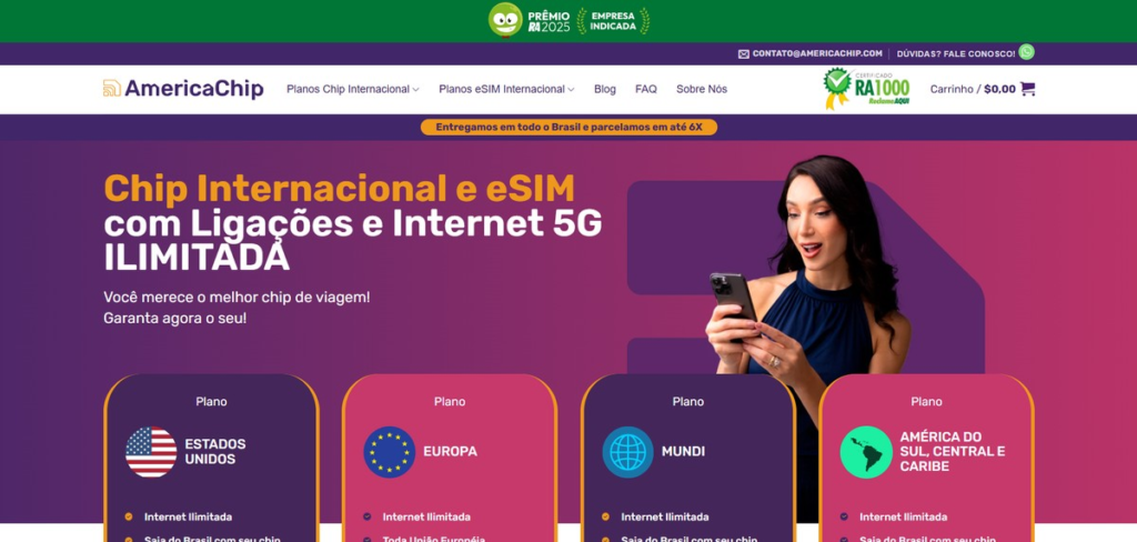 A cobertura da AmericaChip abrange os principais destinos turísticos e de negócios do mundo. A empresa oferece planos regionais específicos para EUA, Europa, América Latina e Caribe, além de um plano global que cobre mais de 140 países. Entre os países disponíveis estão Estados Unidos, México, Canadá, Espanha, França, Itália, Alemanha, Reino Unido, Argentina, Colômbia, Chile, Japão, Austrália, África do Sul, Emirados Árabes e mais.
