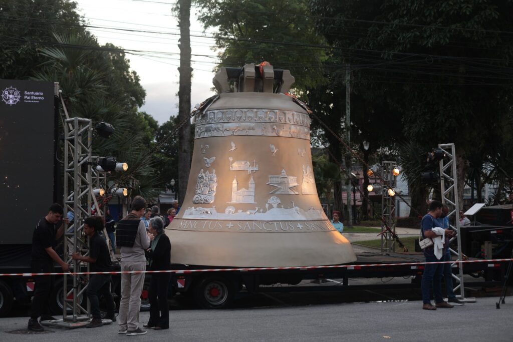 O maior sino do mundo, o Vox Patris — “Voz do Pai” em latim —, foi oficialmente apresentado em Santos neste sábado (24), durante missa na Catedral Paróquia Nossa Senhora do Rosário. A cerimônia foi presidida pelo bispo diocesano, Dom Tarcísio Scaramussa e marcou a passagem do sino em seu trajeto até a nova Basílica do Divino Pai Eterno, em Trindade (GO). A estrutura ficou em exposição em frente à igreja para que os fiéis pudessem contemplá-la.