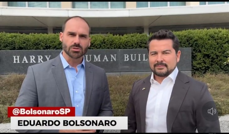 O deputado federal Eduardo Bolsonaro (PL-SP) e o jornalista Paulo Figueiredo anunciaram que estiveram em reunião com o governo dos EUA nesta quarta-feira (15). O encontro com autoridades americanas foi no Departamento de Estado, um dia antes da reunião entre o ministro das Relações Exteriores, Mauro Vieira, e o chefe da diplomacia americana, Marco Rubio.