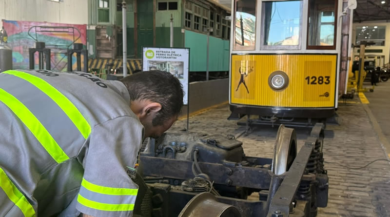 “Para garantir a autenticidade e a eficiência do processo, a equipe técnica realizou uma pesquisa detalhada, resgatando técnicas clássicas de recuperação utilizadas nas antigas frotas. O procedimento se assemelha à recapagem de pneus, mas com uma diferença crucial: no lugar da borracha, um novo aro de aço é instalado sobre a estrutura original da roda”, explica Marcos Rogério Nascimento, coordenador da equipe de restauração e manutenção de bondes da CET-Santos.