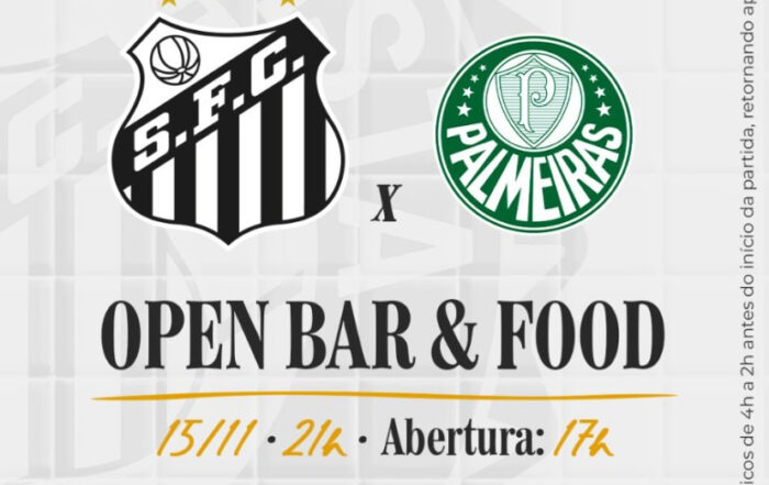 Boteco Santista já está com ingressos disponíveis para a partida entre Santos e Palmeiras neste sábado (15), às 21 horas, na Vila Belmiro, em jogo atrasado válido pela 13ª rodada do Brasileirão. O espaço oferece uma experiência completa para o torcedor com open bar, open food, música ao vivo e presença de ex-jogadores do Peixe.