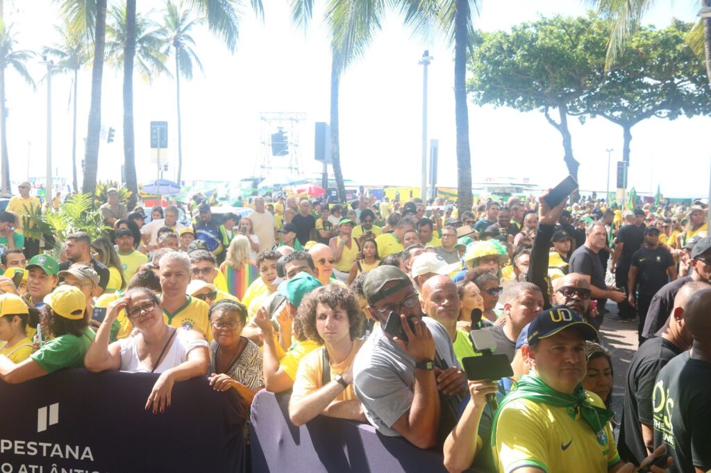 Milhares de brasileiros estão nos arredores da Avenida Atlântica, na Praia de Copacabana, no Rio de Janeiro, para se manifestar a favor da anistia aos presos do 8 de janeiro de 2023.
