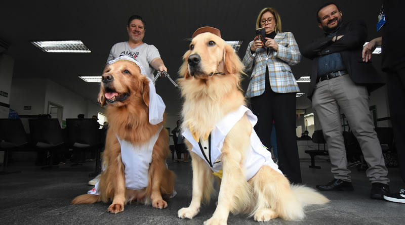 Amor em forma de pelos. Com muito afeto, os cães terapeutas Brioza e Jabuca estiveram na Unidade de Pronto-Atendimento (UPA) Quietude para levar alegria aos pacientes e funcionários. Vestidos com roupas com motivos juninos, os Golden Retriever deram e ganharam muito carinho, posaram para fotos e aqueceram a manhã fria em Praia Grande.