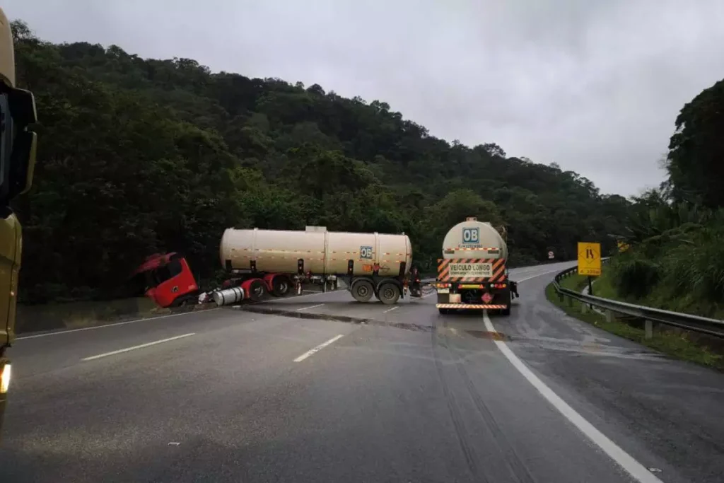 Caminhão bate em mureta e pega fogo