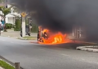 Um carro pegou fogo na tarde desta terça-feira (7), na Avenida Marechal Mallet, no Boqueirão, em Praia Grande. Apesar do susto, não houve feridos.