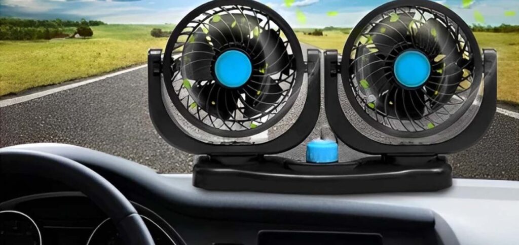 Fácil de ajustar, o ventilador duplo tem inclinação horizontal de 180° e vertical de 360°, podendo ser individualmente apontado para o motorista ou passageiro, por exemplo. Ele ajuda a circular ar dentro do veículo, funciona conectado à energia do próprio carro pelo acendedor e tem sistema de proteção contra sobrecarga.