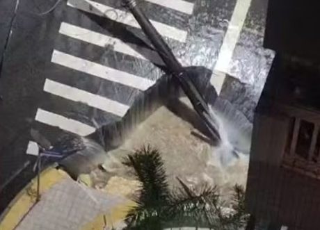 Em São Vicente, uma cratera se abriu no asfalto da esquina entre a Avenida Marechal Deodoro e a Rua Pero Lopes de Souza, na Vila Valença. O buraco pegou parte da calçada de um prédio e, segundo a Defesa Civil, equipes técnicas avaliaram a ocorrência e constataram que não seria necessário evacuar o edifício, pois as estruturas de sustentação não foram impactadas.