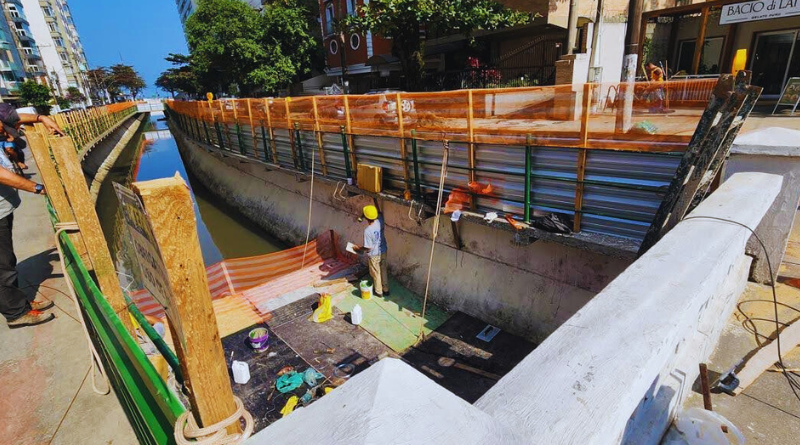 Para minimizar os transtornos aos usuários, as obras foram divididas em dois segmentos, com serviços nos dois lados da ciclovia. Para isso, a empreiteira instalou uma plataforma no interior do canal, permitindo o trabalho simultâneo em ambos os trechos.