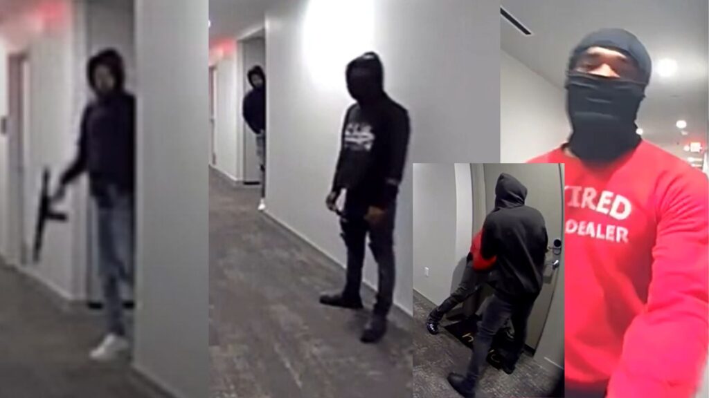 No dia 22 de março, as câmeras flagraram dois indivíduos, ambos com o rosto tampado, em um corredor do complexo de apartamentos Drewery Place, às 14h42. A dupla tapou a câmera das duas residências.