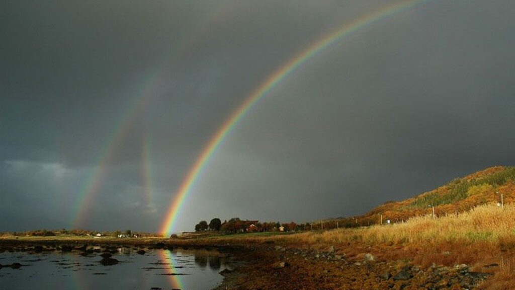 O arco-íris primário — aquele que normalmente vemos — possui uma sequência de cores que vai do vermelho (na parte externa) ao violeta (na parte interna). No entanto, existe também o arco-íris secundário, um fenômeno mais tênue, localizado fora do arco principal.