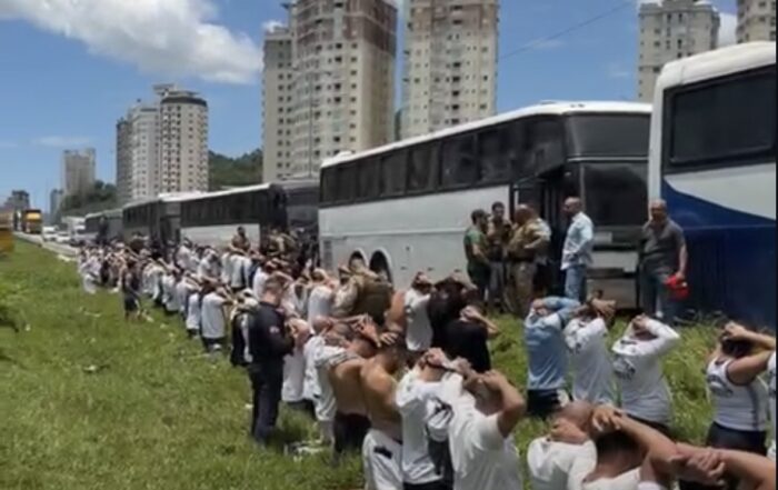 Torcidas Organizadas do Santos foram paradas por PM de SC após confrontos (Foto: Reprodução)