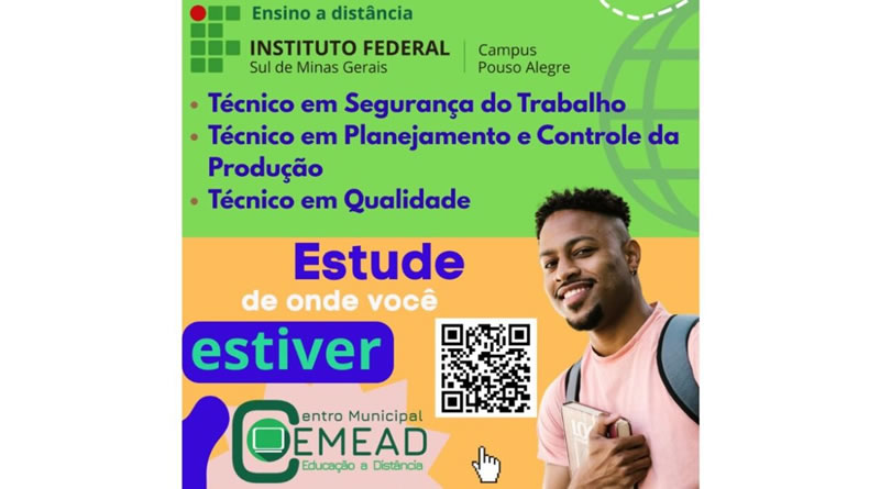 A Secretaria de Educação, via Centro Municipal de Educação a Distância (Cemead), informa que estão abertas as inscrições para cursos técnicos a distância para diversas áreas, com 70 vagas disponíveis.