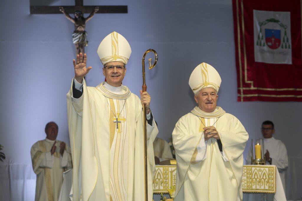 Cerca de quatro mil católicos se reuniram na manhã deste sábado, na Santos Convention Center, para a celebração eucarística que marcou o início da missão episcopal de Dom Joaquim Mol como novo bispo co-adjutor da Diocese de Santos. A cerimônia de posse contou com a presença de bispos de diversas dioceses do Estado de São Paulo, incluindo Dom Tarcísio Scaramussa – que ocupa a cadeira de bispo das nove cidades até setembro, quando completa 75 anos e fará sua renúncia canônica compulsória – e Dom Jacyr Braido, bispo emérito da região