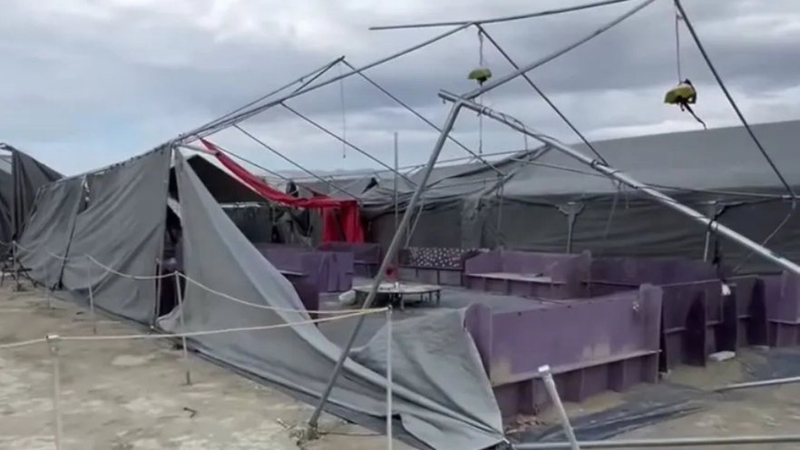 Domo da Orgia é destruído por ventos fortes no deserto de Nevada