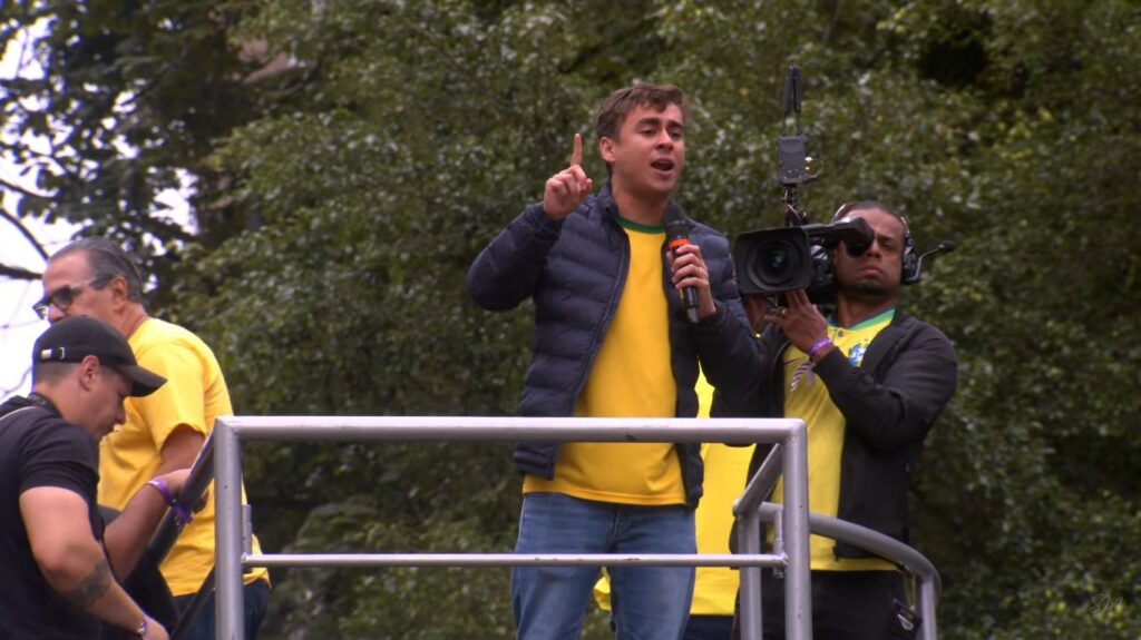 “Eles têm a toga, mas nós temos o povo”, afirmou Nikolas. “Eles têm a caneta, mas nós temos a voz. Eles mentem no escuro, mas a verdade é a luz. O Brasil sangra, mas não se ajoelha. O Brasil chora, mas não se cala. Enquanto houver povo, haverá esperança. Enquanto houver brasileiro, haverá esperança. Enquanto houver Brasil, haverá liberdade, porque o Brasil é nosso.”