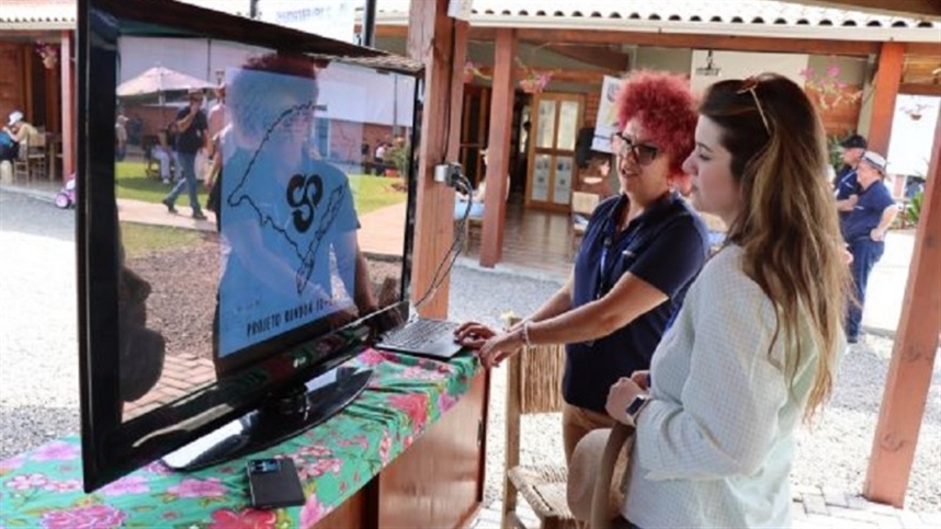 No local, a bibliotecária da Emater/RS-Ascar Cleusa Alves da Rocha, está recebendo os visitantes para contar a história das sete décadas e interagir. Também é possível navegar na plataforma interativa onde existem destaques da Linha do Tempo da Extensão Rural Gaúcha.