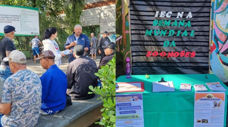 A equipe do Serviço de Controle de Zoonoses (SCZ) da Secretaria de Saúde de Cubatão montou nesta segunda-feira (7) uma tenda na Avenida Nove de Abril junto à entrada do Parque Anilinas para alertar a população sobre a importância dos cuidados e prevenção de doenças como a leptospirose e meningite eosinofílica, que podem ser transmitidas por ratos e pelo caramujo africano.
