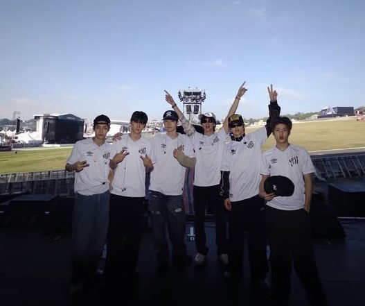 A Riize, banda de K-Pop da Coreia do Sul, que se apresentou no Lollapalooza, no último sábado (21), apareceu com a camisa do Santos. Os integrantes arriscaram várias palavras em português durante o show e fizeram declarações de carinho ao Brasil. Nas redes sociais, postaram foto com o uniforme branco da última temporada e agradeceram o clube pelas camisas.