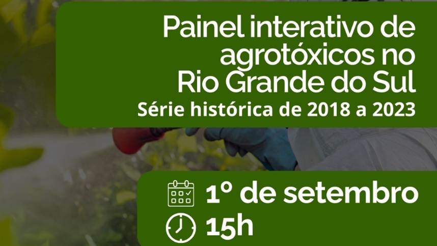 Painel Interativo dos Agrotóxicos no Rio Grande do Sul – série histórica de 2018 a 2023 e o primeiro Boletim Técnico da Defesa Vegetal serão lançados segunda-feira (1º/9), às 15h, na Expointer. Os dados serão apresentados pelos fiscais estaduais agropecuários Ricardo Augusto Felicetti, diretor do Departamento de Defesa Vegetal (DDV) da Secretaria da Agricultura, Pecuária, Produção Sustentável e Irrigação (Seapi), Rafael Friedrich de Lima, chefe da Divisão de Insumos e Serviços Agropecuários da Seapi, e Paulo Victor Rysdyk da Silva, chefe substituto da Divisão de Defesa Sanitária Vegetal. O evento será no auditório do estande do Governo Estadual, no Pavilhão Internacional.