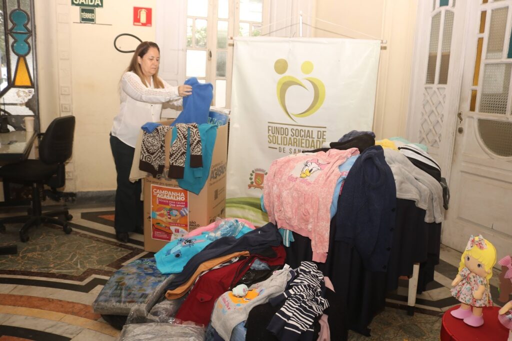 O Fundo Social de Solidariedade de Santos (FSS) também recebeu, nesta quarta-feira, mil peças de roupas e 50 cobertores da Oficina de Modelos By Clô, doados para a Campanha do Agasalho 2025, ‘Abrace essa causa. Doe amor’.