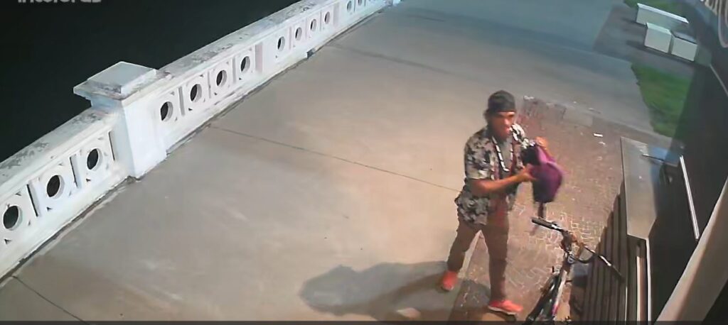 Nas imagens fica nítida a chegada de um homem em uma bicicleta. Ele encosta o veículo no imóvel, pula o balcão e, na área interna, se apodera de alguns itens. O homem sai com toda a tranquilidade e ainda olha para uma das câmeras.