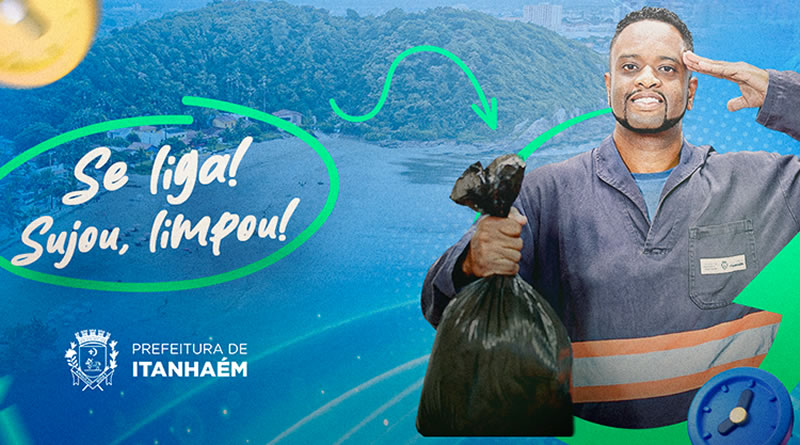 Com o objetivo de fortalecer a consciência coletiva sobre a importância da limpeza urbana e da colaboração cidadã, a Prefeitura de Itanhaém lança a campanha “Se liga, sujou limpou!”, que entra em circulação nesta segunda-feira nos canais oficiais da Administração Municipal.
