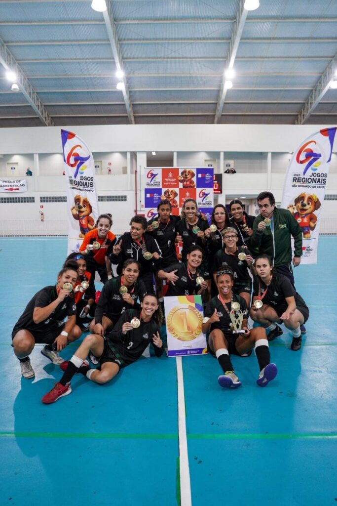 As meninas do futsal santista conquistaram o título dos Jogos Regionais, ontem, dia 14, após vitória sobre Diadema por 5 a 2. Antes, venceram Embu das Artes por 3 a 0 e Bertioga por 8 a 0, garantindo vaga para os Abertos. No total, o time de Santos marcou 16 gols e sofreu apenas dois.