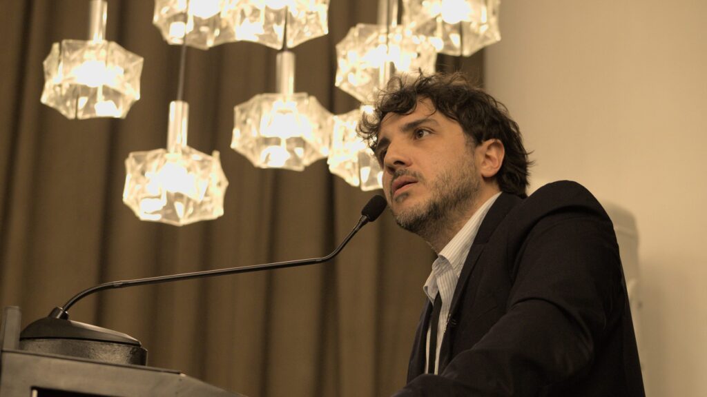 O ativista Renan Santos, coordenador nacional do Movimento Brasil Livre (MBL), discursou durante o lançamento da Frente Contra o Crime Organizado na última segunda-feira, 14, no auditório da Câmara Municipal de São Paulo. A campanha é liderada pela vereadora Amanda Vettorazzo (União), também coordenadora do movimento.