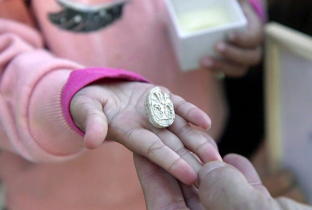 Assim que retiraram a areia, as irmãs logo viram que havia alguma coisa diferente na peça. Quando os pais se juntaram às filhas, perceberam que a bela pedra, com a escultura de um escaravelho, era na verdade um achado arqueológico, e comunicaram imediatamente o fato à Autoridade de Antiguidades de Israel.