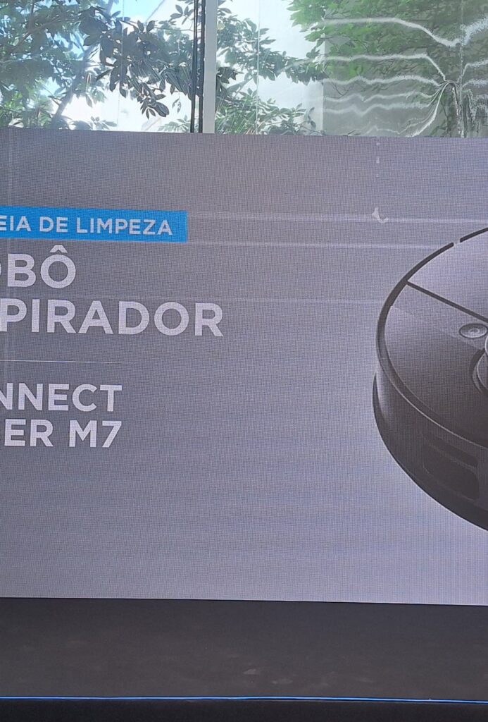 Dentre os destaques do portfólio para 2025 está o robô aspirador ConnectLaser M7. Ele tem conexão Wi-Fi, navegação a laser (LDS) e mapeia o ambiente em 360 graus. Além da sucção da sujeira, ele também realiza a função MOP.
