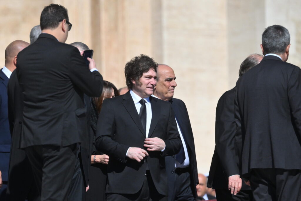 O presidente da Argentina, Javier Milei na missa de corpo presente do Papa Francisco na Praça de São Pedro, na Cidade do Vaticano, em 26 de abril de 2025. (Foto: EFE)