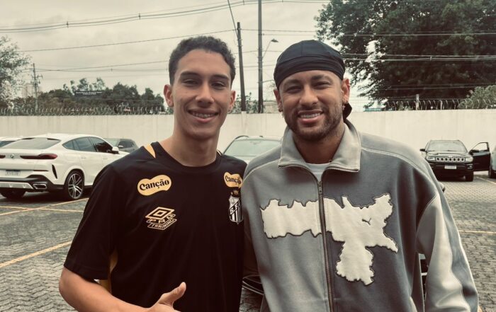 Vanderlei Luxermbugo Neto e Neymar no CT Rei Pelé (Crédito: Arquivo Pessoal)