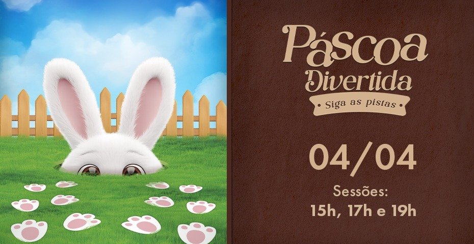 Inscrições: Limite de 30 participantes por sessão mediante cadastro no Sympla: www.sympla.com.br/evento/pascoa-divertida-siga-as-pistas/3352052