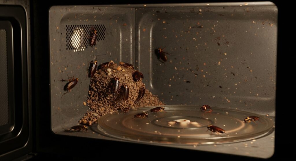 Entre os esconderijos mais comuns estão armários e gavetas, onde encontram migalhas e embalagens mal fechadas; filtros de purificadores de água; o interior do micro-ondas, atraído pelo calor e restos de comida; o forno do fogão, que combina calor e gordura; atrás da geladeira, onde o motor mantém a temperatura; e embaixo da pia, já que há tanto umidade quanto restos.