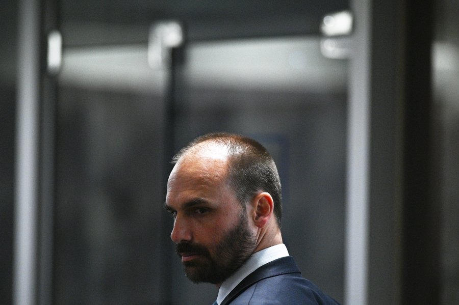 Eduardo Bolsonaro enfrenta uma ação no Supremo Tribunal Federal. Ele é acusado de coação no curso do processo, por supostamente articular punições contra autoridades brasileiras, a fim de obter resultados favoráveis na justiça a si e a seus aliados, sobretudo o ex-presidente Jair Bolsonaro (PL).