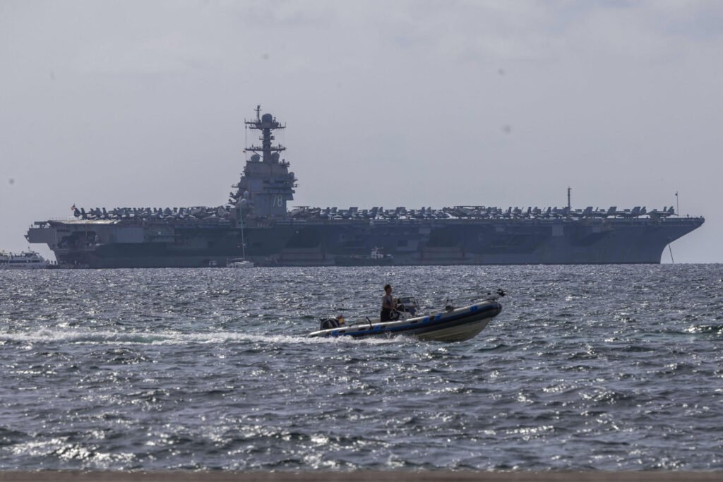 O USS Gerald R. Ford foi redirecionado para o Caribe em outubro para a operação destinada a reforçar o combate ao narcotráfico internacional na América Latina.