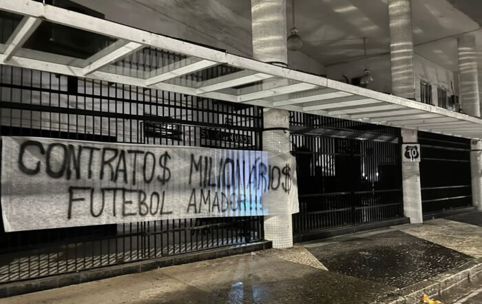 Revoltados com a situação do Santos, torcedores do clube espalharam diversas faixas e cartazes pela cidade entre a noite desta quarta-feira e madrugada de quinta. As mensagens tinham como principal alvo o presidente do clube, Marcelo Teixeira. Veja nas imagens algumas faixas, que foram removidas horas após a colocação.