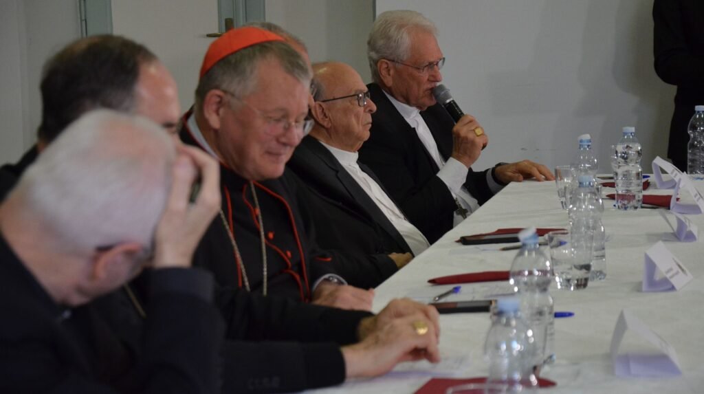 “Eu participei de dois conclaves e posso dizer: esqueçam o filme”, afirmou dom Odilo, em referência ao recente longa-metragem Conclave, estrelado por Ralph Fiennes e Stanley Tucci. “É muita oração, e só depois votação”, disse o arcebispo de São Paulo, confirmando o que dom Jaime havia dito na abertura da coletiva ao dizer que “rezamos muito e intensamente” durante a escolha do novo papa. “Na procissão entre a Capela Paulina e a Capela Sistina, fomos cantando a ladainha dos santos; isso nos recordou que não estávamos sozinhos ali, estávamos acompanhados por uma multidão. Isso toca quem participa de algo assim pela primeira vez”, acrescentou dom Leonardo. Dom Raymundo ainda disse que os cardeais mais velhos, não eleitores, também se uniram em oração pelos colegas que estavam no conclave.