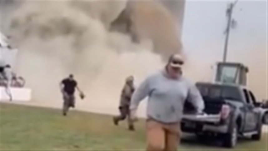 Imagens compartilhadas nas redes sociais mostram o instante em que a estrutura cede, rachando ao meio e levantando uma grande nuvem de poeira. No topo do silo, faíscas visíveis antecedem o colapso, indicando a quebra de cabos elétricos, o que resultou em cortes de energia para centenas de pessoas.