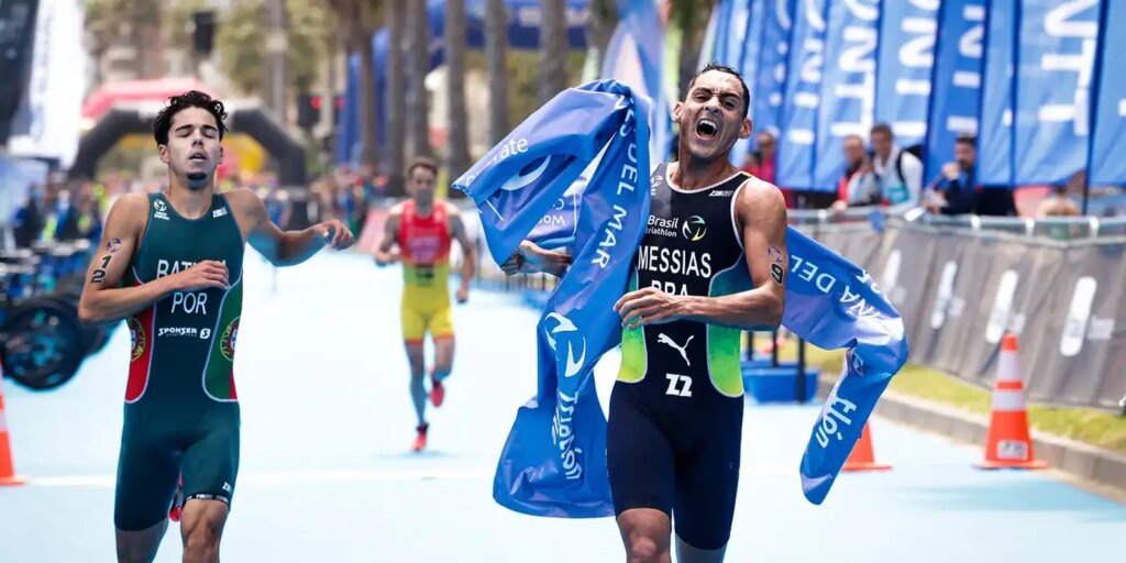 O triatlo brasileiro subiu ao topo do pódio da etapa da Copa do Mundo de Viña del Mar (Chile) no domingo (2) com o atleta Manoel Messias, de 28 anos. Em uma final emocionante, o cearense ocupava a terceira posição a um minuto do final da corrida – último terço da prova – quando disparou para a vitória. Messias cruzou a linha de chegada em 49min38s, apenas um segundo a menos que o português João Nuno Batista (medalha de prata) e cinco do espanhol David Cantero (bronze).![]()