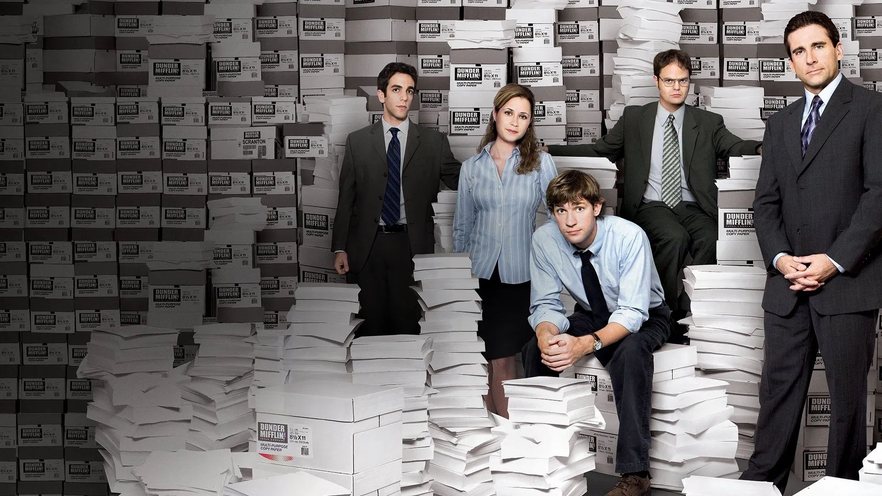 Na história, os funcionários da empresa de papel Dunder-Mifflin, situada em Scranton, na Pensilvânia, precisam lidar com um ambiente de trabalho caótico criado pelo chefe da equipe, Michael Scott (Carell).