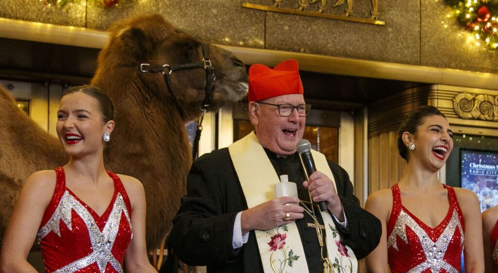O cardeal Timothy Dolan abençoa animais num espetáculo de Natal, em Nova York. (Foto: EFE/EPA/SARAH YENESEL)