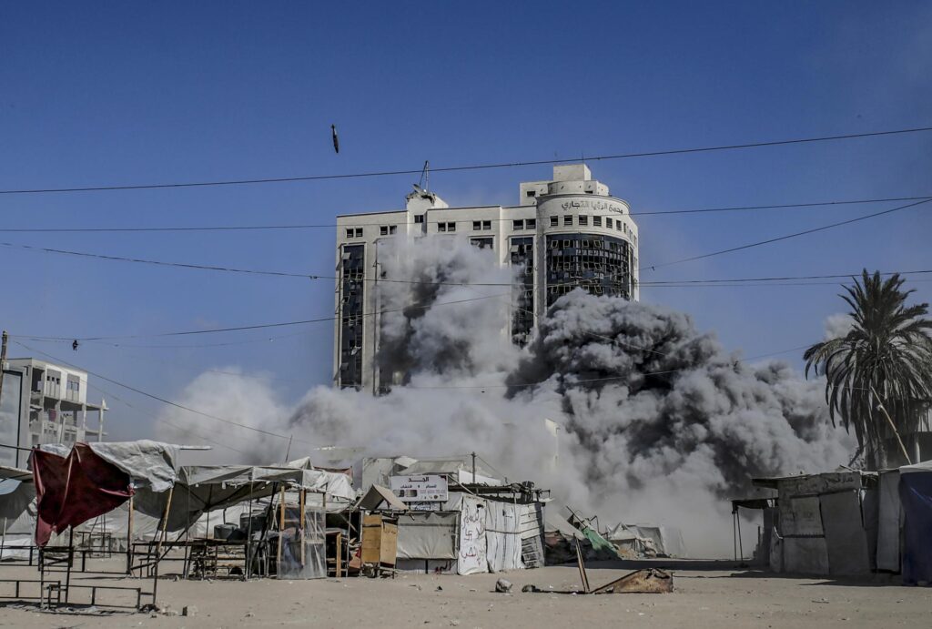 As Forças de Defesa de Israel (FDI) realizaram nesta segunda-feira (8) um bombardeio que destruiu um prédio de escritórios de 12 andares na Cidade de Gaza, o quarto ataque em quatro dias promovido pelos israelenses contra edificações altas na capital do enclave.