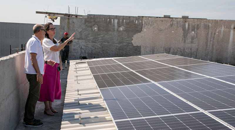 Durante a visita, a secretária de Educação verificou de perto uma das novidades das escolas em construção. As unidades de ensino recebem a instalação das placas fotovoltaicas para captação de energia solar. Os aparelhos foram colocados nos telhados dos prédios.