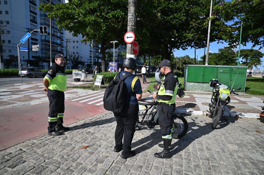 No primeiro dia, dezenas de condutores foram abordados em três pontos da orla: Praça das Bandeiras (Gonzaga), Fonte do Sapo (Aparecida) e Praça dos Surfistas (Posto 2 – Pompeia). Agentes da CET explicaram as normas para circulação. Para completar, entregaram folheto informativo, conforme a Resolução nº 996/2023 do Contran, regulamentada pela Lei Municipal 4.221/2023.