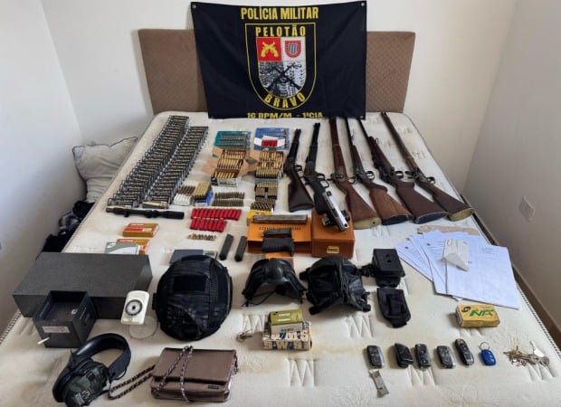 O conjunto reunia principalmente pistolas, carabinas, espingardas, munição, carregadores e equipamentos para uso tático. Além disso, os agentes apreenderam 30 documentos com dados de empresas e chaves de carros de luxo. O material indica, conforme as autoridades, uma possível ligação com atividades criminosas com alto nível de sofisticação.