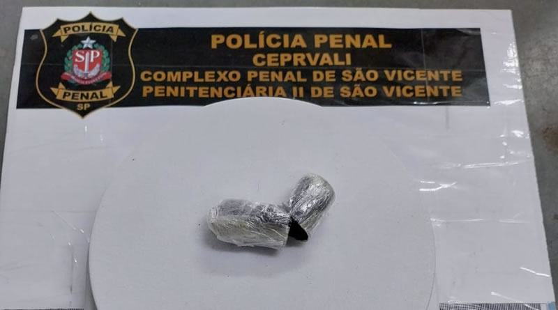 A Polícia Penal do Estado de São Paulo informa que no último sábado, 5, o Complexo Penal de São Vicente registrou uma apreensão de ilícito com uma visitante de um preso. O flagrante ocorreu na Penitenciária 2 de São Vicente, no momento da revista de familiares de detentos para entrada na unidade prisional, no horário de visitas.
